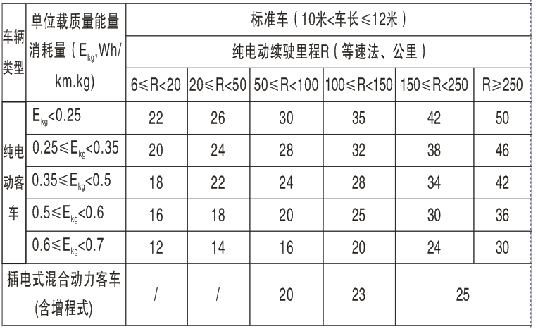 (2)纯电动、插电式混合动力等客车推广应用补助标准(单位:万元/辆)