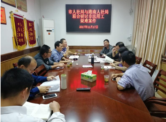 为进一步办理好复杂疑难案件,2017年11月17日,港南区人社局与市人社局上下联合组织开展了劳动保障监察疑难案件研讨会。研讨非法用工等疑难案件的处置。港南区劳监韦海聪大队长带领全大队业务骨干参加了此次研讨会。
