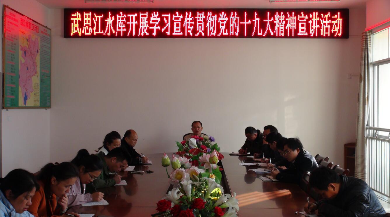 谭炽寿明确要求全库党员干部职工要把学习好、宣传好、贯彻好、落实好党的十九大精神作为当前和今后一个时期全库的首要政治任务,必须坚持以习近平新时代中国特色社会主义思想作为指导思想和行动指南,推动党的十九大精神贯穿水库一切工作全过程,让十九大精神在水库落地生根,开花结果。