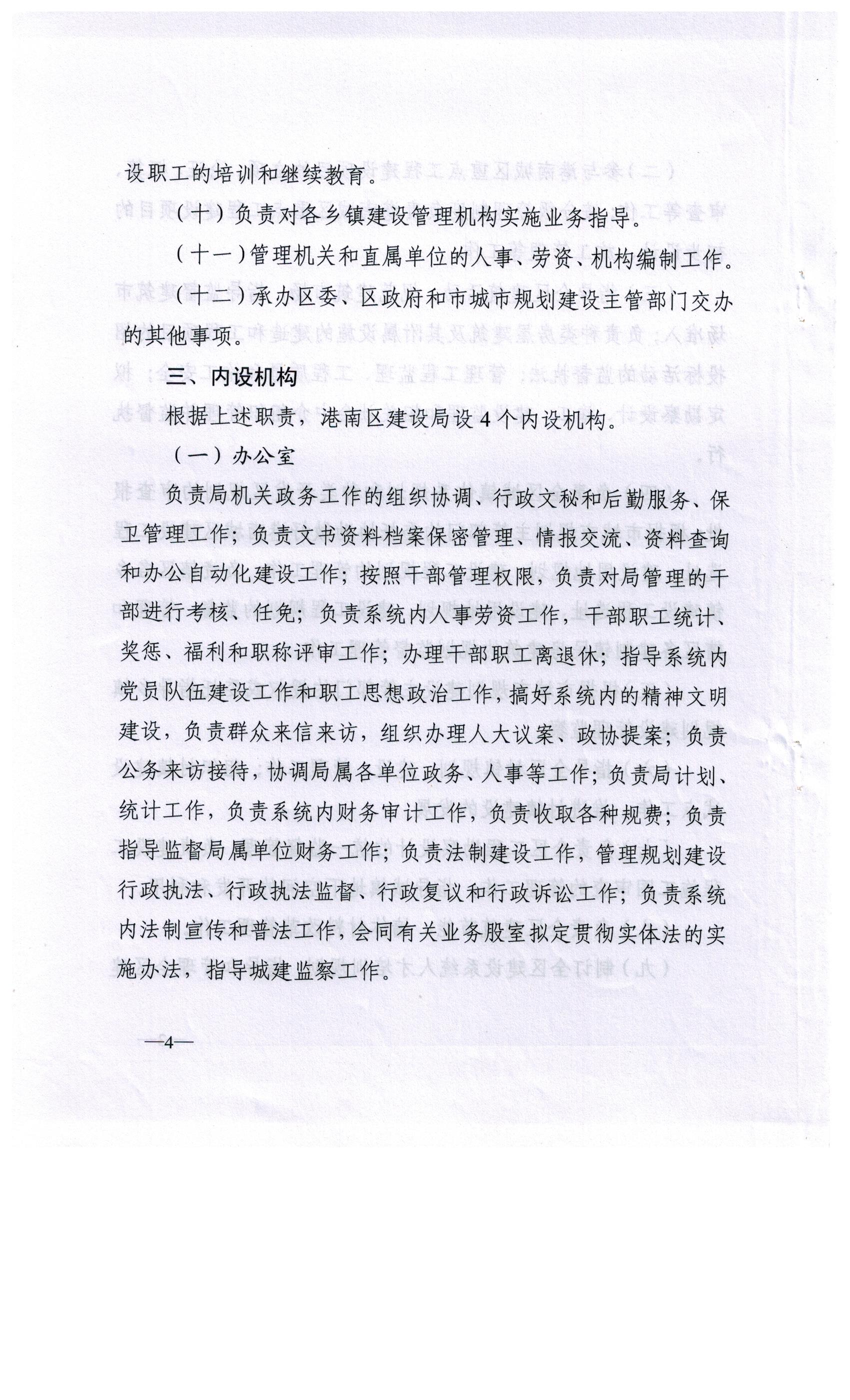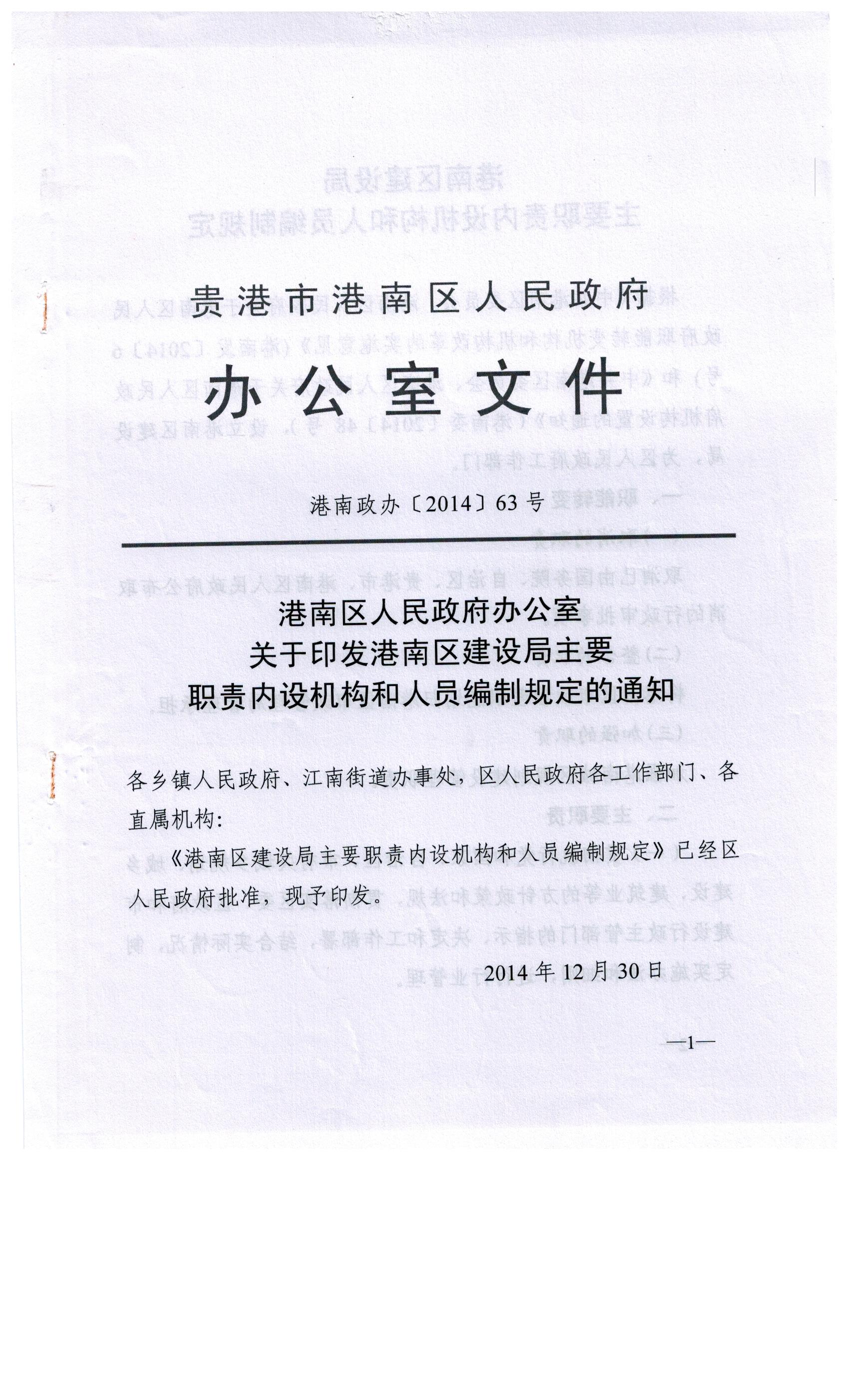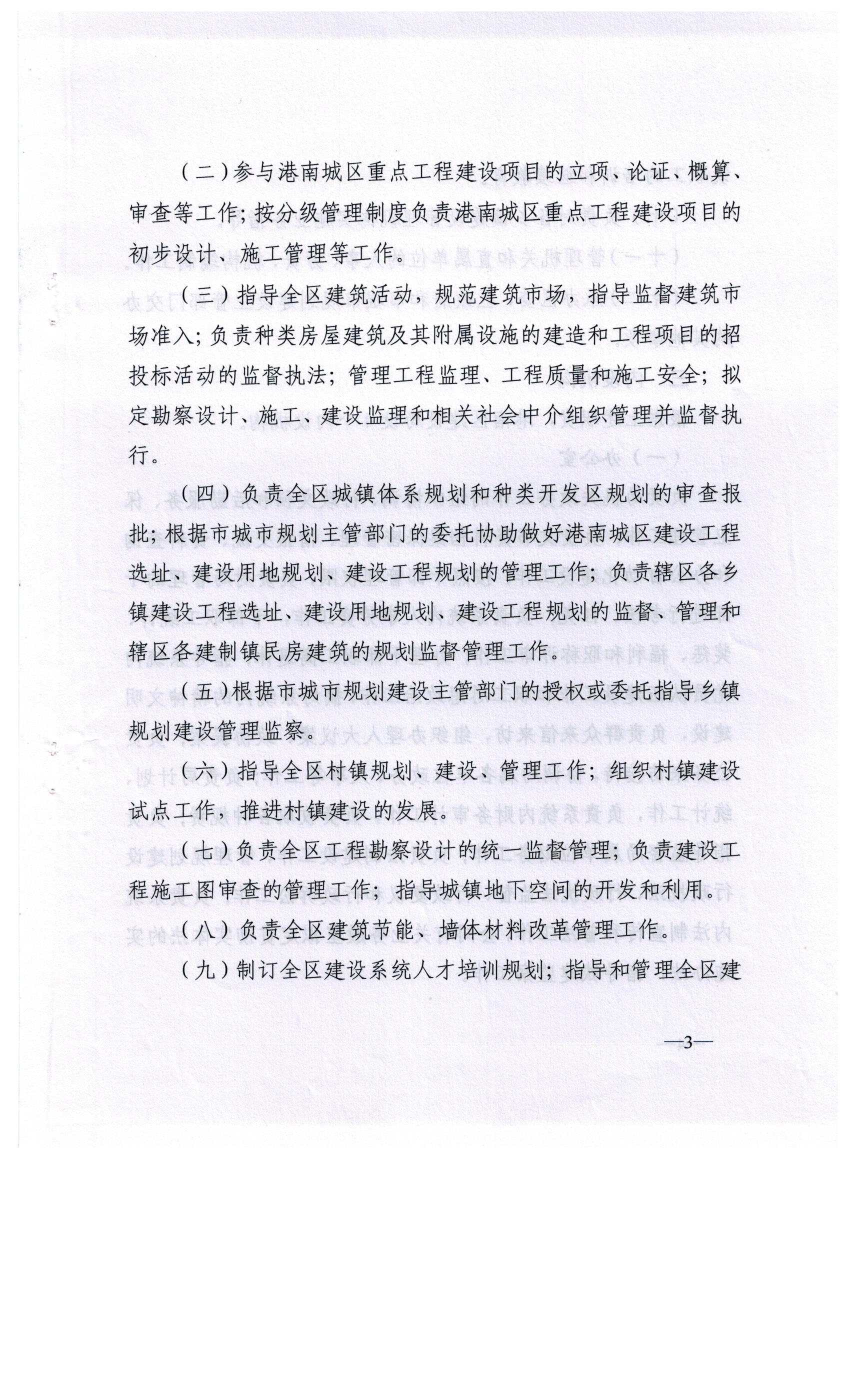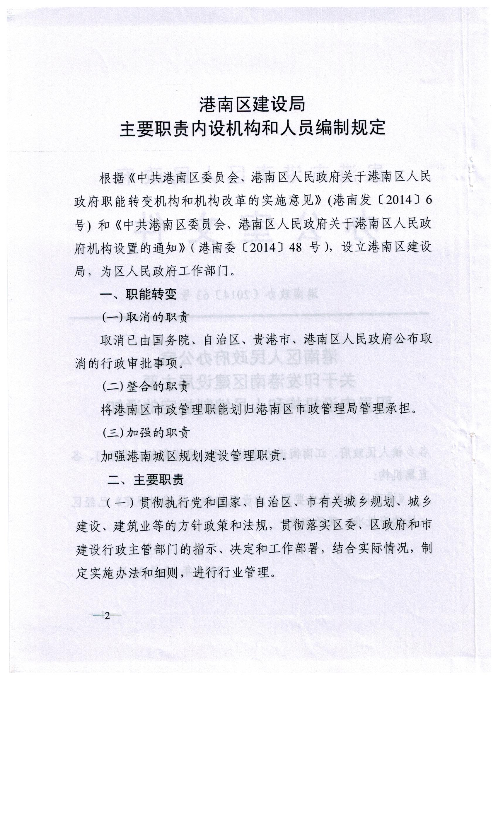 关于印发港南区建设局主要职责内设机构和人员编制规定的通知