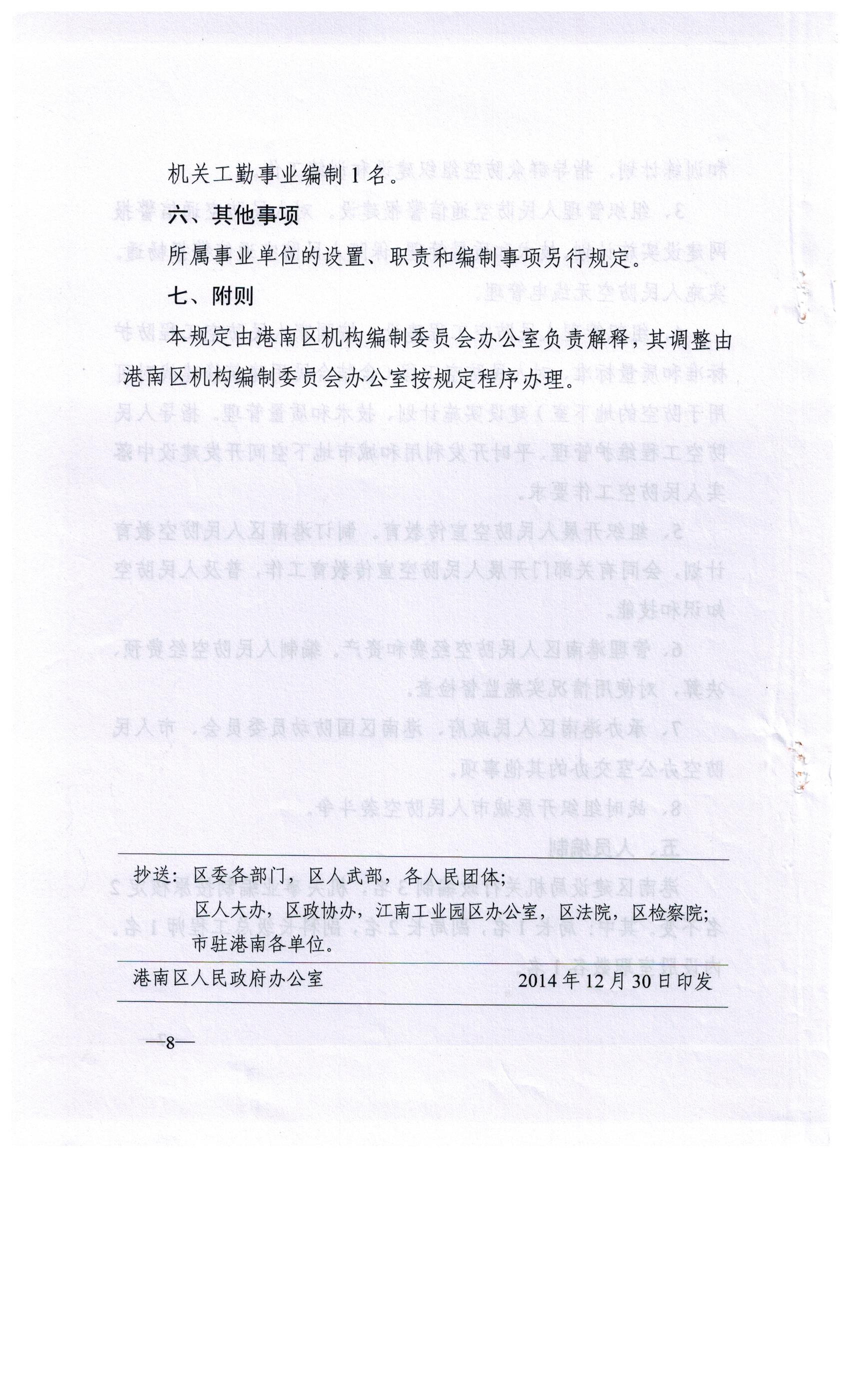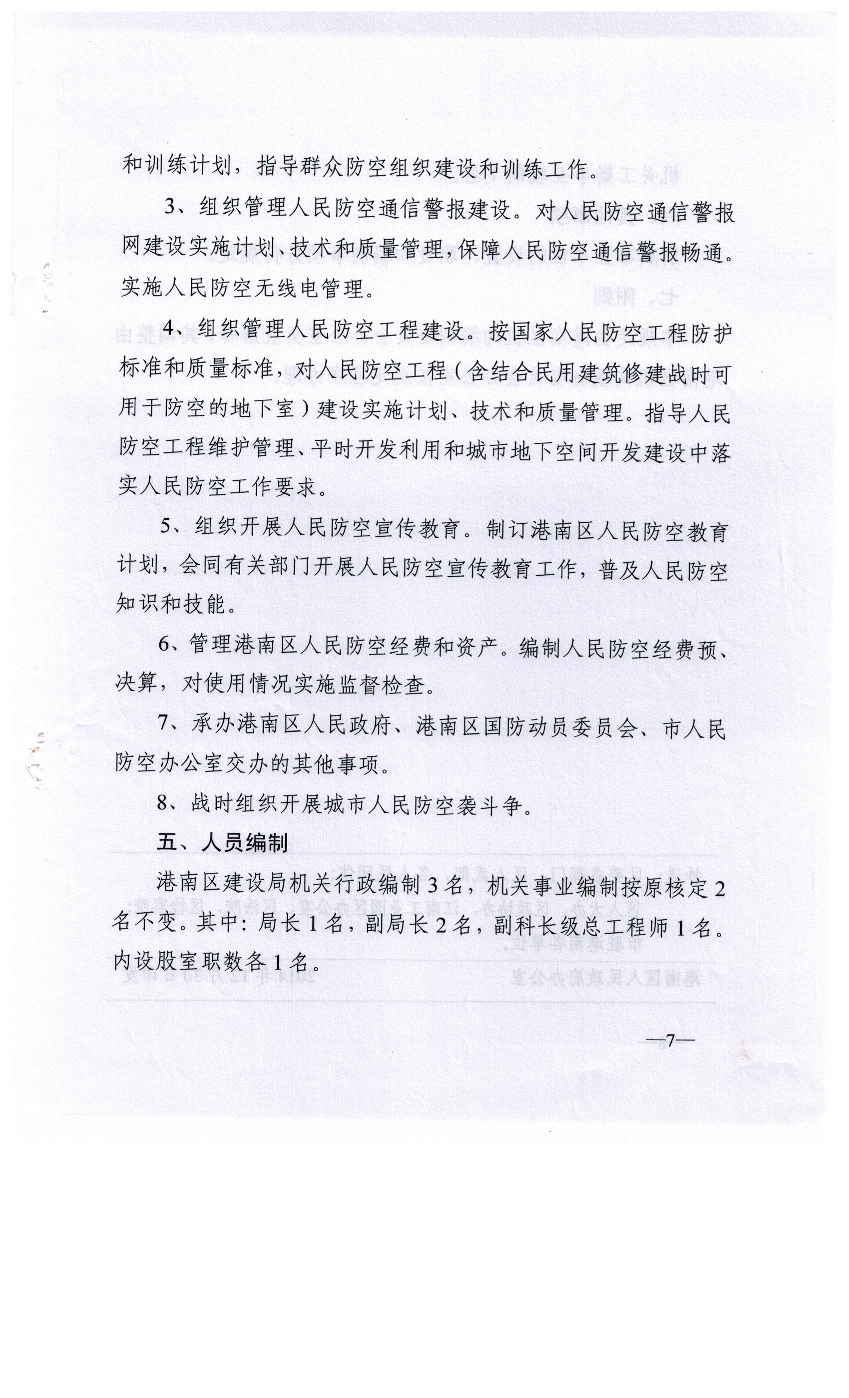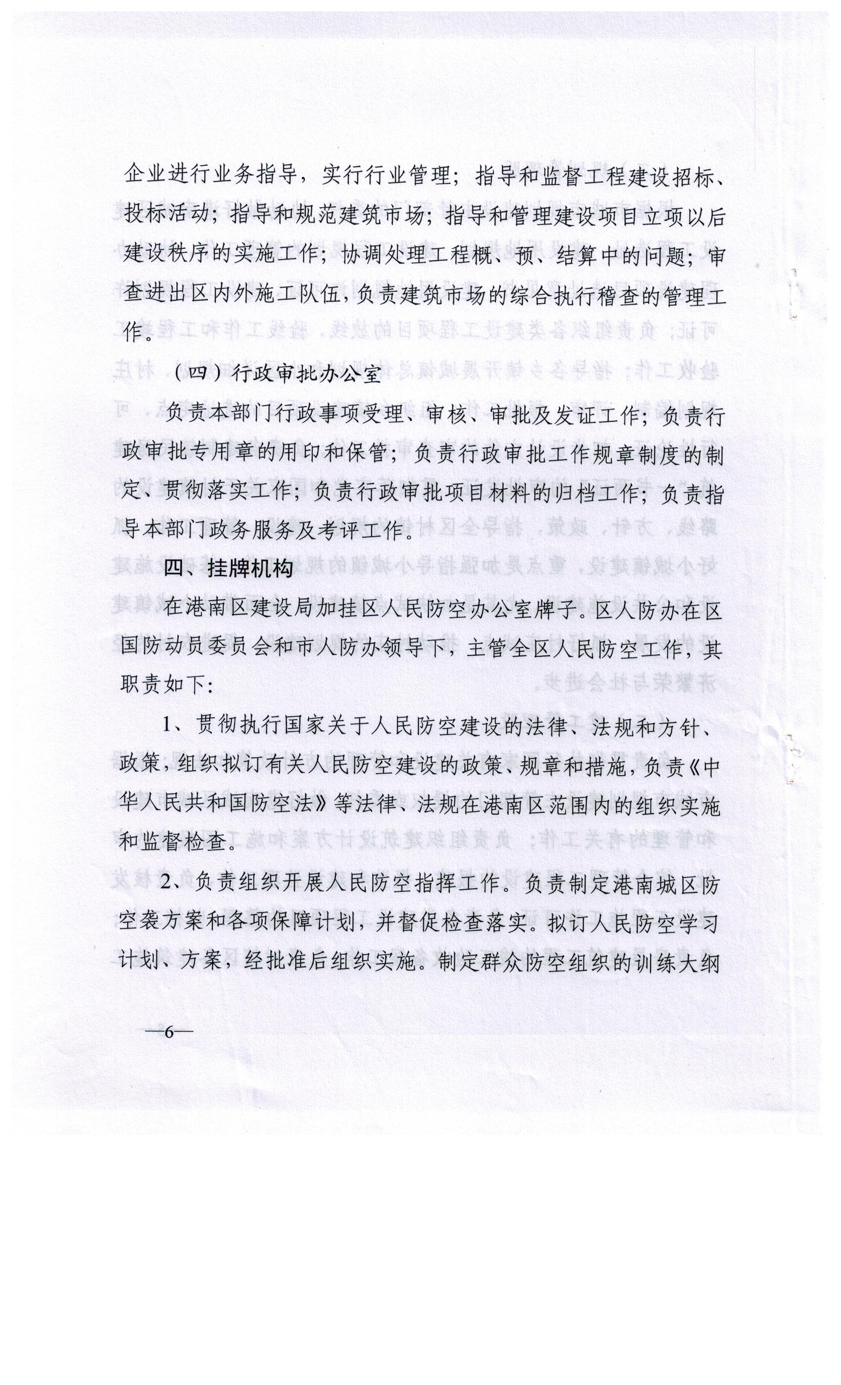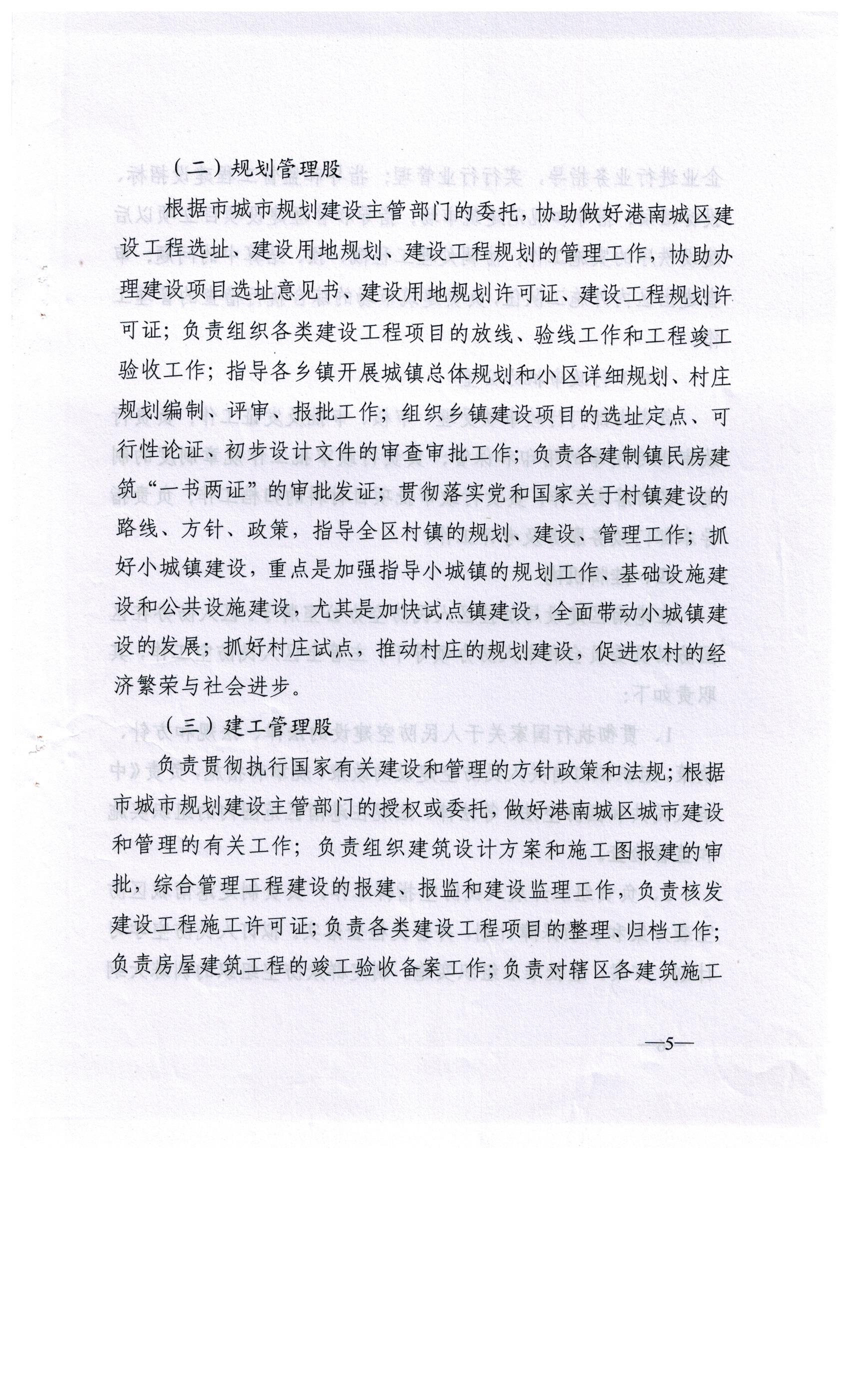 关于印发港南区建设局主要职责内设机构和人员编制规定的通知