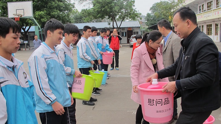 12月1日上午,港南区委常委、宣传部部长,副区长朱健和区卫生计生局局长叶丹带队一行12人到辖区河面小学开展流动人口健康进校园宣传活动,并赠送体育运动器材及慰问流动学龄儿童。